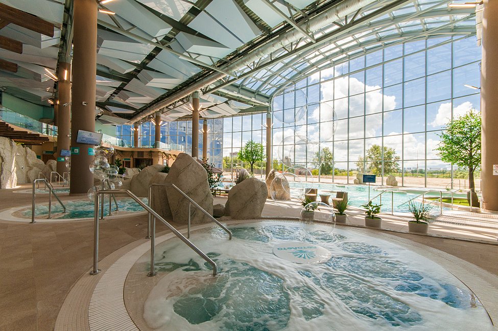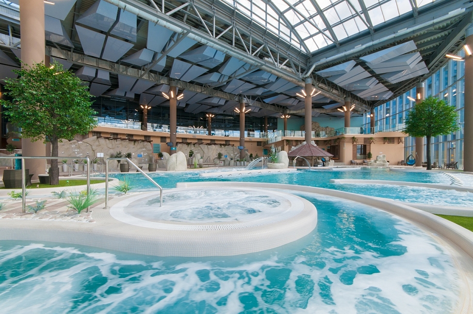 Хороший комплекс с доступом к аквапарку и термальным источникам (аквапарк так себе, зона бань и источник вообще огонь).