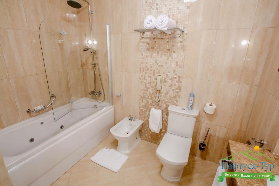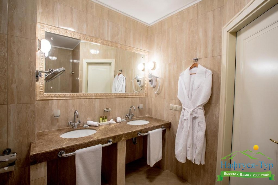 2 санузла, биде, с ванной, тапочки, туалетные принадлежности, фен, халат