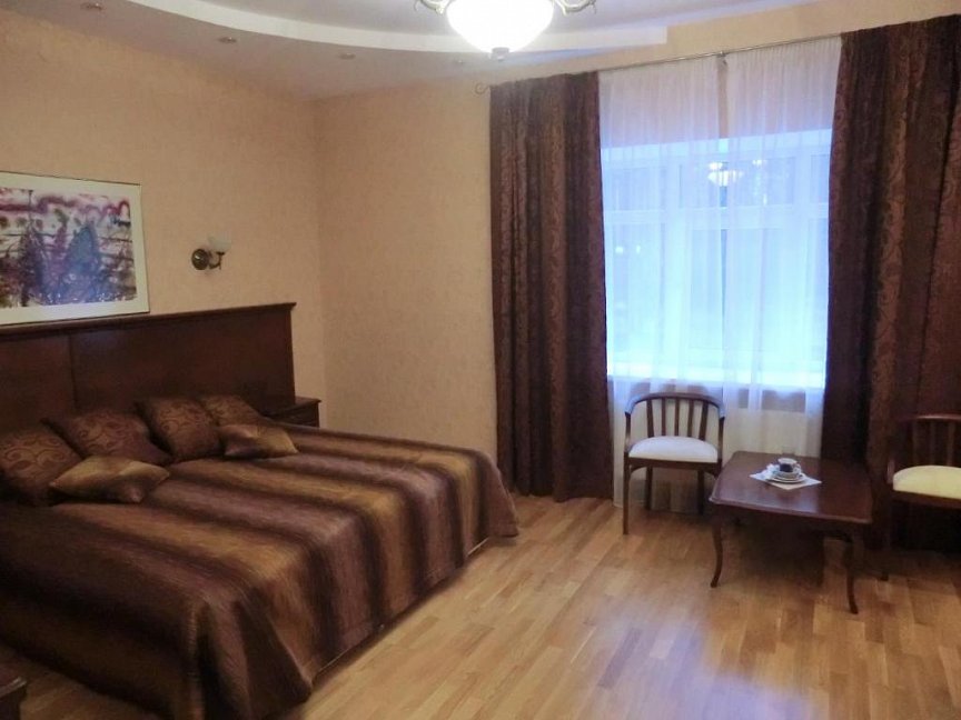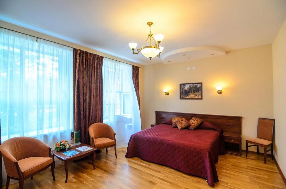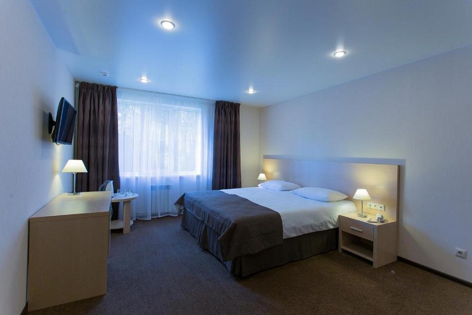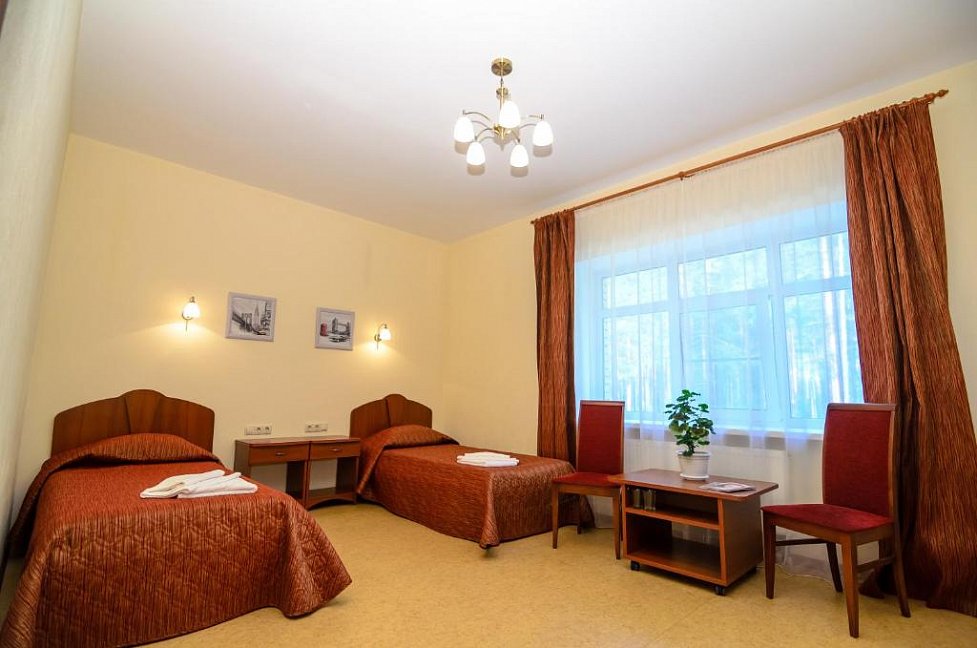 На благоустроенной территории разместились три трехэтажных корпуса с мансардными этажами, три двухэтажных гостевых дома, одноэтажные домики в лесу, дуплексы и здание физкультурно-оздоровительного комплекса. Жилой фонд базы отдыха рассчитан на единовременное размещение более 300 человек. Гостей ожидают светлые номера категории Стандарт, Семейный и Комфорт, оснащенные ванной комнатой с душем и бытовой техникой — телевизором, кондиционером, холодильником.