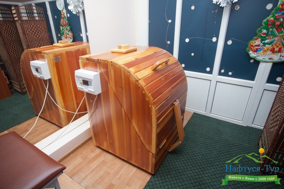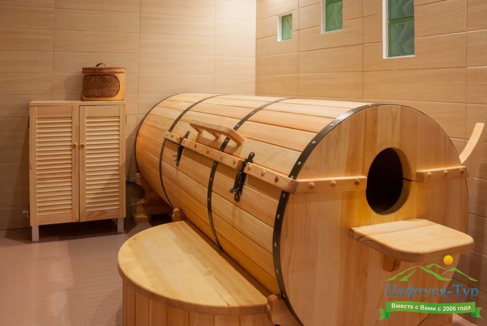 Кедровая бочка (фитосауна, фитопаротерапия, термококон) – комплексный метод теплового и фитотерапевтического воздействия на человеческий организм, обеспечивающий целый спектр полезных результатов. Для проведения процедуры предназначена специальная бочка, в которую усаживается человек (голова остается сверху), а затем в замкнутый объем бочки подается водяной пар, насыщенный различными фитопрепаратами (эфирные масла, травы и т.д.). При этом лечебный эффект обеспечивает и сам материал, из которого изготовлена бочка, ведь уже многие века хорошо известна целебная сила древесины сибирского кедра. Кедровая бочка часто используется в СПА-центрах для очищения и омоложения организма, избавления от целлюлита, лишнего веса, улучшения состояния кожи. Но эту процедуру также могут предписать и медики целого ряда санаториев для лечения синдрома хронической усталости, снятия стрессовых состояний, повышения иммунитета, нормализации работы системы обмена веществ.Санатории с процедурой Кедровая бочка