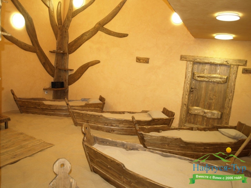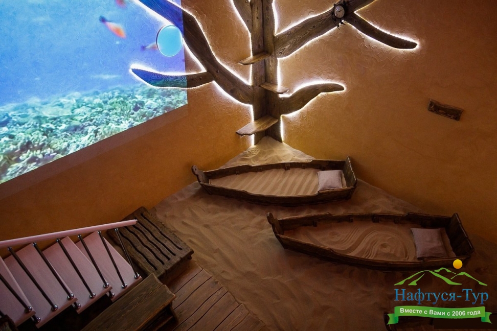 Песочная комната (песочная или арт-терапия) – название специальным образом оборудованного помещения и методики, использование которой обеспечивает психологическую разгрузку, релаксацию людей всех возрастов. Как правило, в такой комнате имеется определенное арт-окружение (например, фигурки, скульптуры), а основным оборудованием выступают две песочницы. Одна из них содержит сухой песок, предназначенный для создания узоров, вторая – мокрый песок, из которого можно лепить фигурки. В результате пребывания и занятий творчеством в таком помещении человек избавляется от психоэмоционального напряжения, добивается релаксации при одновременной активизации деятельности нервной системы, улучшает свое настроение. Песочная комната на сегодня оборудована в ряде санаториев нашей страны и применяется в качестве дополнительного средства при лечении множества заболеваний.